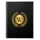 This personalised spiral notebook feature a golden monogram frame encircled with a laurel wreath. Personalise with your monogram, name or other text by selecting the "Customise It" button and filling in your text in the design template. You may change fonts, font sizes and font colours if you prefer. You may also change the black background colour to another colour. This item makes a lovely gift.