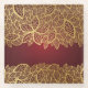 Golden leaf lace on red background glass coaster