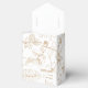 A pattern of golden leaves in outline is the focal point for this beautiful favour box. The lower-case, typewritten font and modern layout make this an eye-catching gift for your guests. Easily add your names, personal 'thank you' message and wedding date using the provided template.
