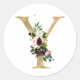 Golden letter MONOGRAMM boho burgundy flowers Cla Classic Round Sticker