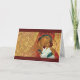 Russian Orthodox Christmas greeting card featuring an icon of Mother of God on a golden background with images and ornaments inside the card.