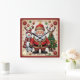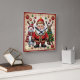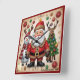 A festive design with a snowman, Santa, deer, and a decorated Christmas tree, set against a golden, dotted floral background, evoking warmth and holiday magic. "Original Image was generated by Meta AI. AI generated artwork. Licensed under CC BY-SA 4.0."