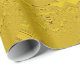 This artwork features a large, stylised lion head motif that dominates the composition. The design is highly symmetrical and intricate, resembling a mandala or heraldic crest. The lion's features are abstract and geometric, formed by repeating patterns and swirling lines, creating a modern and artistic interpretation. The background is a solid, flat yellow, emphasizing the golden lion head and enhancing its visual impact.