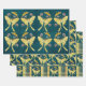 Golden Luna Moth with Flowers on Teal with Plaid Wrapping Paper Sheet