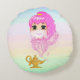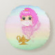 Golden magic lamp and pink genie on pastel colours Round Pillow.