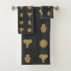 Antique-gold boho mandala graphics set on charcoal make these towels a unique statement piece for your bathroom decor. The elephants feature intricate mandala-inspired detailing throughout, creating a dimensional look, while the bone-toned tusks and amber eyes add natural contrast. The henna detailed hamsa hands alternates up and down for protection and blessings. Bring good vibes into your bathroom with these gorgeous towels. Choose the 3pc set or purchase the single towel depending on your decor needs. The matching bath mat and shower curtain are available in my store.