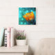 Golden Marigold on Teal Bokeh Square Wall Clock