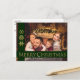 A modern Christmas card design with your family photo framed by Christmas green bands and a shining glimmering gold Merry Christmas. You can personalise the backside Christmas greeting, your return address and your names in script near the bottom with space for you to add a handwritten personal note.