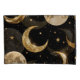 A seamless celestial pattern featuring golden metallic-style moons in both full and crescent phases, glowing elegantly against a deep black starry background. The shimmering accents create a mystical, luxurious vibe — perfect for stargazers, dreamers, and anyone who loves cosmic-inspired art. Beautiful on phone cases, blankets, and home decor.