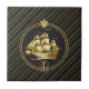 Golden Metallic Sailing Ship & Anchor Gold Stripes Ceramic Tile
