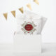 Golden moments of love. The design exudes a dark elegance that immediately catches the eye. It features a central circular motif with a deep red background that creates a passionate and romantic atmosphere. In the middle of the circle are the silhouettes of a bride and groom lovingly holding heart balloons - a symbol of love and joy. Inside the circle, the text "Mr & Mrs" is emblazoned in a stylish font, celebrating the couple's connection and life together. The circle is framed by delicate gold embellishments that add a touch of luxury to the design. These ornate details draw the eye and create an opulent aura.