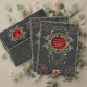 Golden moments of love. The design exudes a dark elegance that immediately catches the eye. It features a central circular motif with a deep red background that creates a passionate and romantic atmosphere. In the middle of the circle are the silhouettes of a bride and groom lovingly holding heart balloons - a symbol of love and joy. Inside the circle, the text "Mr & Mrs" is emblazoned in a stylish font, celebrating the couple's connection and life together. The circle is framed by delicate gold embellishments that add a touch of luxury to the design. These ornate details draw the eye and create an opulent aura.