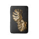 Golden painted tropical monstera leaves on black background.