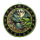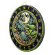 Bring an enchanting touch to your space with this striking dartboard featuring a green and gold frog perched beneath a glowing golden moon. Surrounded by serene mountains, flowing waterfalls, and a shimmering lake, this design celebrates nature's magic and elegance.