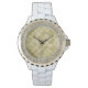 Beautiful Womens White Rhinestone Face Watch, Featuring our Golden Music Notes Design - Gold Background Image Licensed from and Copyrighted by Graphics Factory