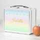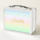 Golden name calligraphy & stars on pastel colours metal lunch box