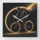 Golden Neon Bicycle Square Wall Clock