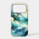 Soft flowing waves in rich teal and turquoise tones blend seamlessly with warm golden light.