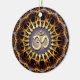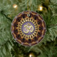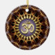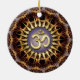 Golden OM Sanskrit symbol, customisable ceramic ornament in gold on organic tapestry weave geometric cross pattern. Makes a great personalised gift idea ~ keepsake gift ~ decorate and hang this positive happy energy ornament in your home, Yoga studio, bedroom, hang this ornament in your car, van or office!
