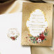 Create an unforgettable winter wedding with this elegant holiday invitation design featuring a lush spray of Christmas roses, poinsettia, holly and pine, white label with an ornate gold foil border and an opulent faux metallic gold gradient damask pattern background. Back features a custom gold crest with initial text fields.