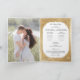 Create an unforgettable winter wedding with this elegant holiday folded program design featuring a lush spray of Christmas roses, poinsettia, holly and pine, white label with an ornate gold border and an opulent faux metallic gold gradient damask pattern background. Inside features a photo template.