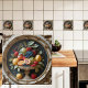 Step into a scene of timeless abundance with Golden Orchard, a digitally enhanced AI creation rich in classical charm. This ceramic tile features a luscious arrangement of fruits—grapes, berries, peaches, citrus, and pears—overflowing from a pedestal bowl and cradled by a regal, gold-toned wreath. Intricate floral and leaf detailing frame the composition, while a moody, dark backdrop adds drama and contrast that lets the vibrant colours pop. Perfect for kitchens, wine cellars, or elegant dining spaces, this design offers a sophisticated fusion of still-life tradition and modern digital craftsmanship.