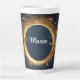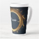A radiant golden circular ring adorned with swirling flame-like tendrils; set against a dark blue backdrop. Perfect for luxury, magic, or celebration themes, symbolising eternity, prosperity, and elegance.