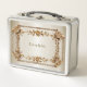 Golden Ornate Rectangle Dimond Flowers Shiny Metal Lunch Box