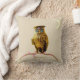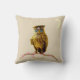 Golden owl and crescent moon on beige background throw pillow. Crescent text can be personalised.