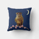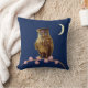 Golden Owl, Flowers and Crescent Moon on Navy Blue Cushion