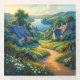 Golden Path to Blue Water is a luminous countryside landscape created as an homage to the radiant, idealised environments associated with Maxfield Parrish. A winding sunlit path draws the viewer through flowering gardens and sculpted cottages towards a serene expanse of cobalt-blue water, framed by rolling hills and glowing skies. Saturated colour, theatrical light, and carefully balanced composition create a scene that feels timeless and gently unreal, evoking a sense of calm, beauty, and mythic stillness without directly imitating Parrish’s work.