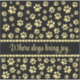 Elegant golden dog paw prints on a black background, featuring a simple and stylish design with a custom name. Perfect for gifts, accessories, and home decor.
