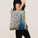 A beautiful peacock adorns this sturdy tote bag. Inspired by an original layered mixed media painting by Judy Sorrels, it features vivid teal and gold, with texture.