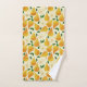 A pattern of vibrant golden-brown pears in shades of yellow, orange and gold, with deep green leaves. Some of the pears are halved to show the juicy insides and seeds. This pattern is clean and modern, using simplistic fruit illustrations paired with watercolour textures and a limited colour palette.
