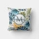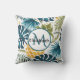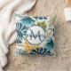 Golden pineapple blue palm leaves foliage monogram cushion
