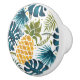Golden pineapple blue palm leaves foliage white ceramic knob