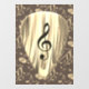 This elegant design combines musical aesthetics with a luxurious gold marbled look. The focus is on a classy guitar pick with a curved treble clef graphic, surrounded by a harmonious pattern of gold notes on a warm brown background. Perfect for music lovers, guitarists and anyone looking for a stylish tribute to music. Ideal for personalized gifts, accessories or decorations with a musical flair.