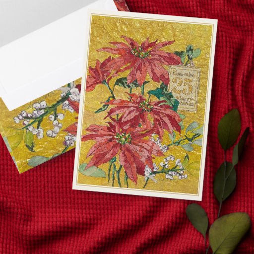 Golden Poinsettia | Blank Fine Art Christmas Card