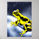 Golden poison frog in the snow with snow weather. This is a AI generated art.