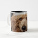 Golden Poodle Dog wearing a white clown costume Two-Tone Coffee Mug