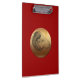 Large golden circle with an original drawing of a ram like a decorative breastplate on customisable red clipboard. Matching t-shirt, keychain, electronics and more... Perfect for Chinese New Year of the Ram Sheep or Goat or Birthday (people born in Ram year). --- --- The Goat (Chinese: 羊; pinyin: yáng) is the eighth sign of the 12-year cycle of animals that appear in the Chinese zodiac related to the Chinese calendar. The sign is also referred to as the Ram or Sheep sign, since the Chinese word yáng is more accurately translated as Caprinae, a taxonomic subfamily which includes both sheep and goats. (...) People born within these date ranges can be said to have been born in the "Year of the Goat", while also bearing the following elemental sign: