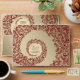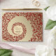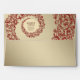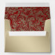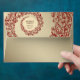 This envelope design highlights a rich red background adorned with ornate golden damask patterns. The intricate floral swirls form a radiant circular frame at the centre, where customisable name and address details can be placed. The powerful contrast of deep red and shimmering gold evokes a regal and festive elegance, making it ideal for weddings, anniversaries, grand celebrations, or formal invitations. All text areas are fully editable for your personalisation.