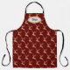 Fun and modern winter / holiday themed apron features pattern of leaping gold reindeer on cranberry red background with text oval to add name or personal message.