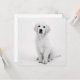 Die Vorderseite der Karte zeigt ein majestätisches Porträt des Golden Retrievers, dessen liebenswertes Gesicht Sie direkt anschaut. Das Bild ist in hochwertigem Schwarz-Weiß gedruckt und verleiht dem Design einen Hauch von Raffinesse und Eleganz.