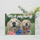 Let everyone know you're having an Independence Day party with this cute invitation! Design features a photograph of two golden retriever dogs, who are outside wearing stars-and-stripes bow ties. Text is fully customisable with all of your personal details.