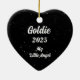 Heart shaped tree ornament with your beloved dog's personal name and dates to keep your sweet baby close and be reminded year after year of the love you've shared. Sweet angel dog is a Golden Retriever with wings and halo.