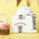 Golden retriever with aviator sunglasses and striped necktie on white background for birthday.