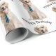 Golden retriever with black glasses and striped necktie on white background for birthday.