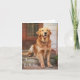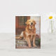 This birthday card features a handsome golden retriever waiting for his owner to come home.