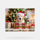 Golden retriever Christmas celebration. Oh so cute, Golden Retriever puppy emerging from a Christmas present. Merry Christmas.